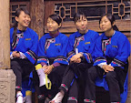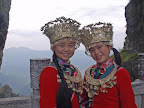 Tour guide ladies at hill temple in Guizhou