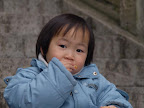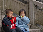 Finally when we almost reached the bottom, where vertigo was over, I met these two cute children having their snack on the staircase.