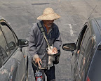 A beggar near traffic light.