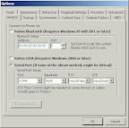 General tab, choose serial port, Port=whichever com port you are connected to, baud rate=default=9600, RTS=handshake, DTR=handshake. Click OK.